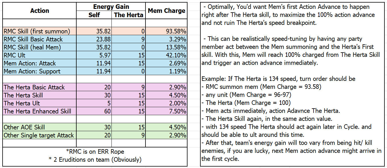 Remembrance Trailblazer (RMC)—and their Eidolons—are freely obtainable in 3.0’s story/exploration. They are a strong unit that can give a brand new buff, allowing an ally to deal a new type of damage called True DMG. Aside from that, RMC’s memosprite, Mem, can advance one character and let them deal additional True DMG while giving a CRIT DMG% buff to all allies in the party. In The Herta teams with RMC as the support, they will funnel Mem’s buffs to The Herta. Please refer to the below chart on how to run RMC with The Herta for the first cycle.